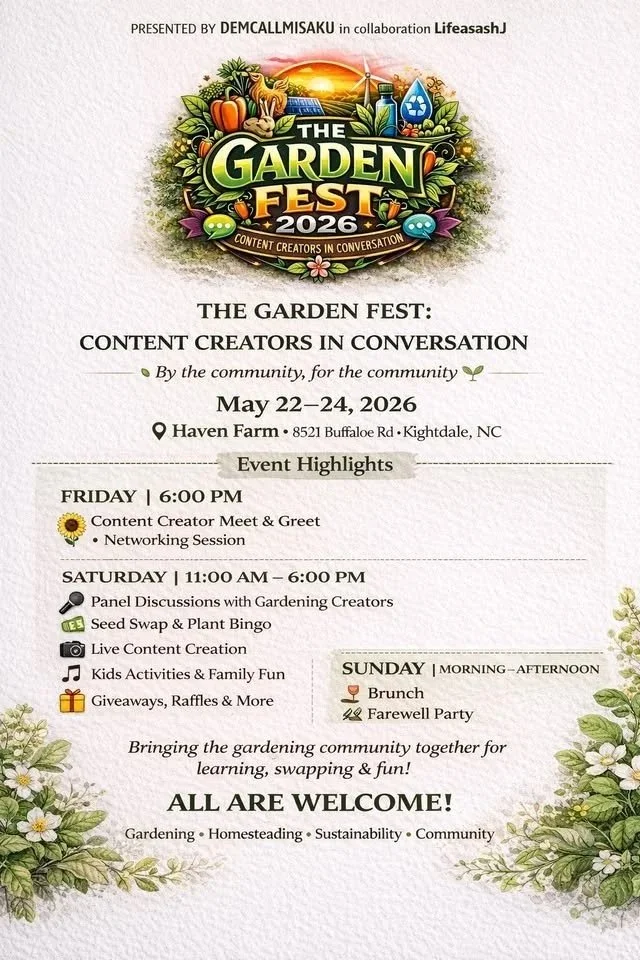 Saturday is the heart of Garden Fest CCC — a full day of learning, connection, and hands-on experiences designed for gardeners, homesteaders, and content creators alike.